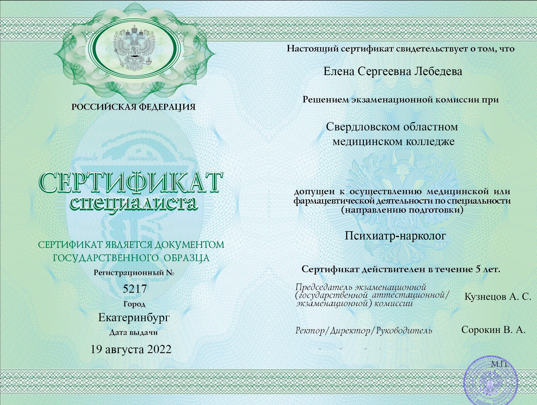 Елена Сергеевна Лебедева врач нарколог клиники доктора Стукаловой в Белоозёрском
